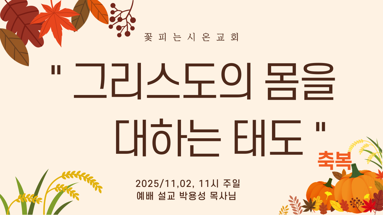 | 꽃피는 시온교회 11시 주일 예배 ( " 경건은 범사에 유익 " ) 2025/10,19 , 설교 박용성 목사 (0) | 2025.10.19 |